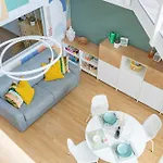 The apartment has an adjoining terrace and a dressing room, and comforts such as climate control. A highlight of the accommodation for guests is the presence of a hair dryer, free toiletries, and bath sheets in the bathroom. A bidet, a separate toilet, and a shower can also be found.